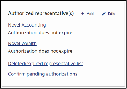 If you’re also working with Novel Accounting, you’ll also need to authorize Novel Accounting. The GroupID for Novel Accounting is G3Z2BH